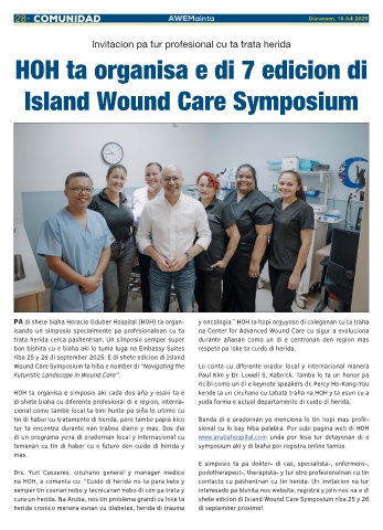 cura un herida. Na Aruba, nos tin problema grandi cu loke ta shete edicion di Island Wound Care Symposium riba 25 y 26