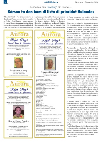 rmamento 01 december 2020 di 9:00am pa 11:00 na Aurora Funeral su stul i situashon a bai atras so den Karibe.