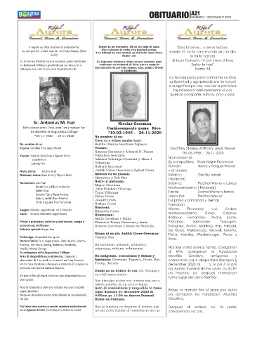 Despues di entiero no ta ricibi bishita di condolencia 9:00am pa 11:00 na Aurora Funeral un donacion na Fundacion Muchila