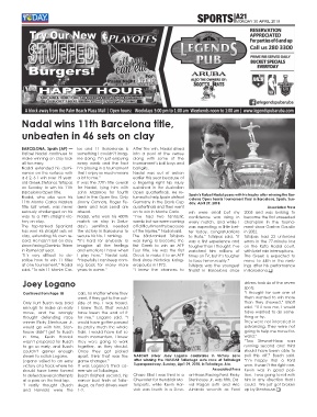 Barcelona Open title. John McEnroe for fourth Open quarterfinals. He re- Spain’s Rafael Nadal poses with his trophy after winning the Bar-
