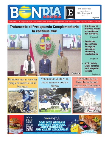 Diahuebs 21 di Augustus 2025 www.bondia.com Email: noticia@bondia.com Tel: 582-7800 Fax: 582-7044 1,75 Florin