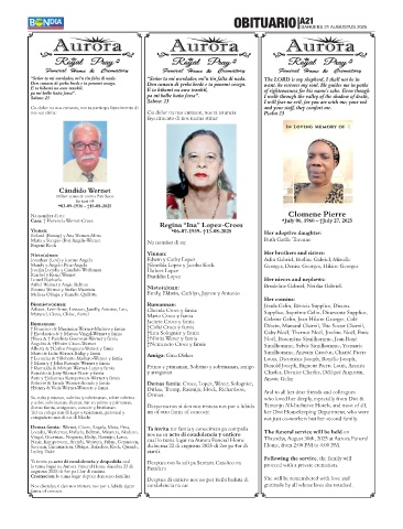 Vingal, Geerman, Noguera, Bislip, Rasmijn, Larez, nos na su acto di condolencia y entiero Thursday, August 30th, 2025 at Aurora Funeral