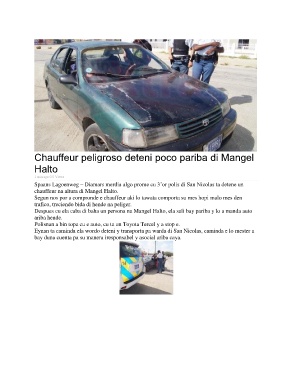 Chauffeur peligroso deteni poco pariba di Mangel
