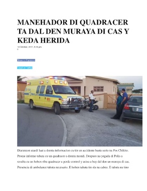 resulta cu un hoben riba quadracer a perde control y asina a bay dal den un muraya di cas.