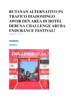 RUTANAN ALTERNATIVO PA TRAFICO DIADOMINGO AWOR DEN AREA DI HOTEL DEBI NA CHALLENGE ARUBA ENDURANCE FESTIVAL! 18 October, 2017, 10:11 pm 0 17 Share on Facebook Tweet on Twitter