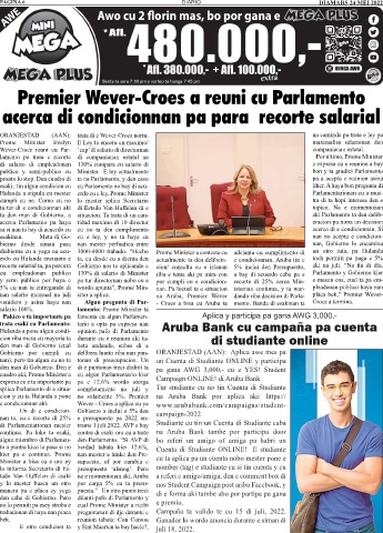 nan salario mensual na juli ister a splica. na Aruba, Premier Wever dando riba decision di Parla- placa bek,” Premier Wever-