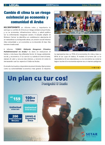 subraya cu cambio di clima ta un riesgo existencial pa Aruba,