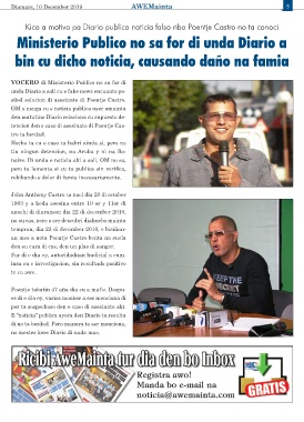 Kico a motiva pa Diario publica noticia falso riba Poentje Castro no ta conoci
