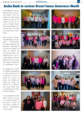Aruba Bank ta sostene Breast Cancer Awareness Month