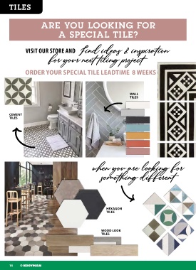 Tiles Are you looking for a special tile? ORDER YOUR SPECIAL TILE LEADTIME 8 WEEKS WALL TILES CEMENT TILES HEXAGON TILES WOOD LOOK TILES 14