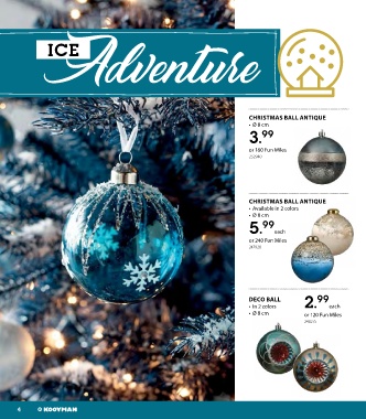 Ice CHRISTMAS BALL ANTIQUE • Ø 8 cm 3. 99 or 160 Fun Miles 252940 CHRISTMAS BALL ANTIQUE • Available in 2 colors • Ø 8 cm 5. 99 each or 240 Fun Miles 247928 DECO BALL 2. 99 • In 2 colors each • Ø 8 cm or 120 Fun Miles 248275 4 4