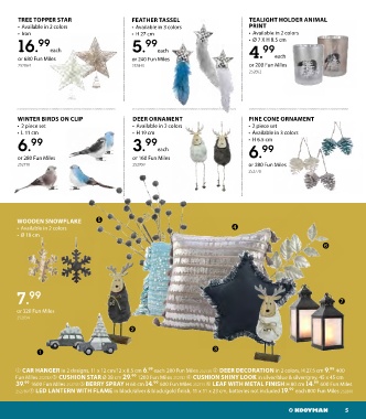 ➀ CAR HANGER in 2 designs, 11 x 12 cm/12 x 8.5 cm 6. 99 each 280 Fun Miles 252730 ➁ DEER DECORATION in 2 colors, H 27.5 cm 9. 99 400