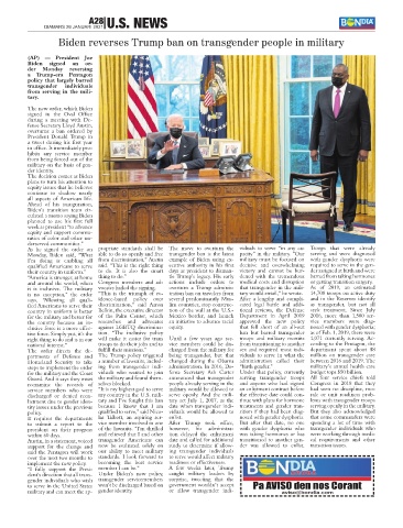 it is inclusive. The military vocates hailed the signing. overturn a Trump adminis- that transgender in the mili- As of 2019, an estimated