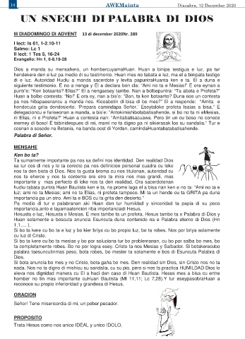 III DIADOMINGO DI ADVENT 13 di december 2020Nr. 289