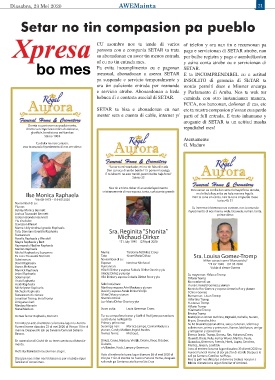 Disculpa nos si den nos tristesa nos por a lubida algun 9’or pa 11’or di mainta na Aurora Funeral Home, despues Nos ta pidi nos disculpa si den nos tristesa nos por a
