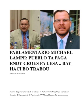 Durante dia por a tuma nota di un articulo cu Parlamentario Endy Croes a dirigi den