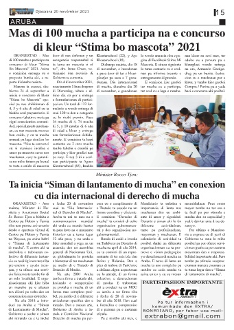 Bo Mascota” 2021. Asina no”, drs. Irene Croes, ve- di november, e huradonan lo tuma contacto cu e scol- na ora, Armando Goedge-