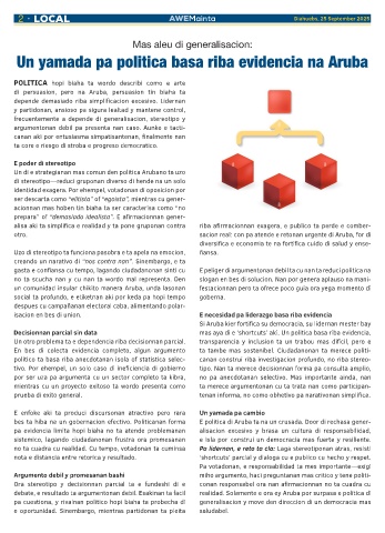 Un yamada pa politica basa riba evidencia na Aruba