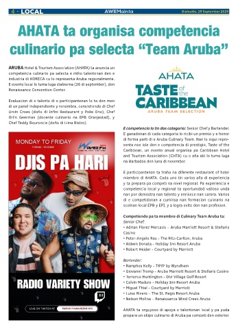 prepara un ekipo culinario di Aruba pa competi den exterior.