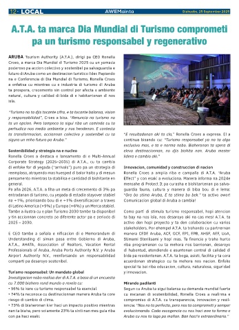 A.T.A. ta marca Dia Mundial di Turismo comprometi