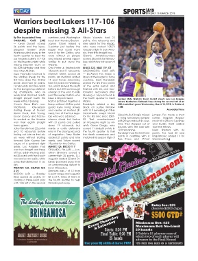 OAKLAND, Calif. (AP) beat short-handed Boston. points, nine rebounds and