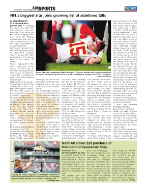 (thumb), Ben Roethlisberg- before he rolled onto his the field on a cart, so train- ing. But Moore found him- instead of Mahomes.