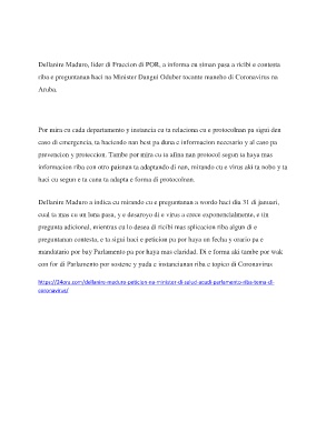 riba e preguntanan haci na Minister Dangui Oduber tocante maneho di Coronavirus na