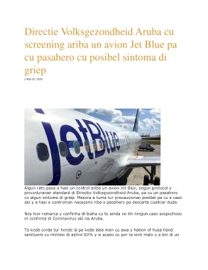 Nos kier remarca y confirma di biaha cu te ainda no tin ningun caso sospechoso