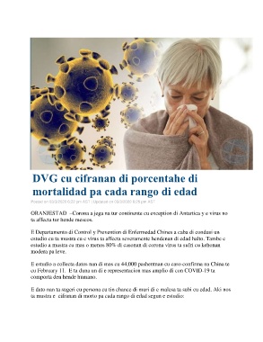 estudio a mustra cu mas o menos 80% di casonan di corona virus ta sufri cu kehonan