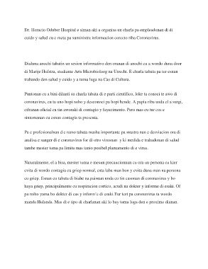 pa miho yama bo dokter di cas y inform’e di esaki.Tur test pa coronavirus ta wordo