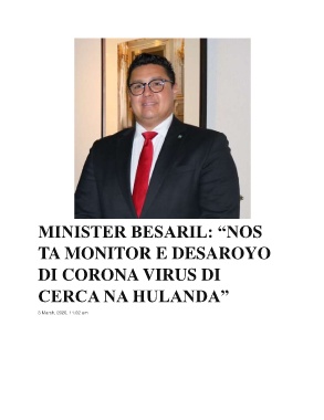 \ MINISTER BESARIL: “NOS TA MONITOR E DESAROYO DI CORONA VIRUS DI CERCA NA HULANDA” 3 March, 2020, 11:02 am 401