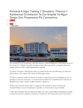 Dr. Horacio E. Oduber Hospital di biaha a traha riba un protocol, a organisa training y