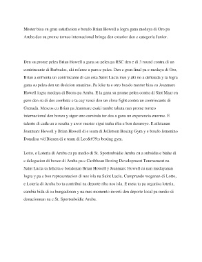 Mester bisa cu gran satisfacion e boxdo Brian Howell a logra gana medaya di Oro pa