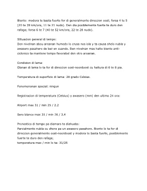 Registracion di temperatura (Celsius) y awasero (mm) den ultimo 24 ora: