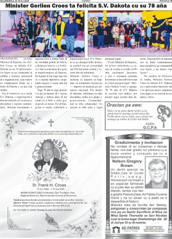 Dakota cu su 78 aniversario. ca e laso social door di e pod- uni riba balornan comun y in- turo di Aruba ta wordo skirbi mas fuerte y un futuro mas