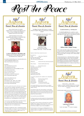 †Tata DomingoBoekhoudt “Niki”q.e.p.d. Noord, diamars 25 di mei pa 5.30 pm na Kapel di Alto