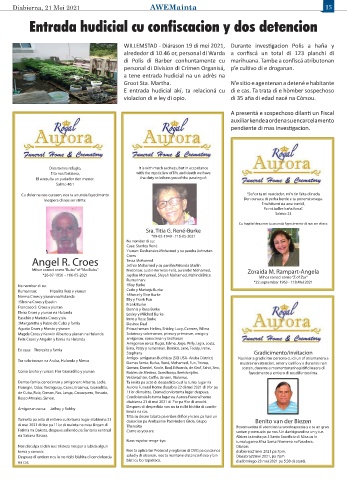 Flanegin, Odor, Yarzagaray, Croes, Erasmus, Granadillo, Aurora Funeral Home diasabra 22 di mei 2021 di 9’or pa