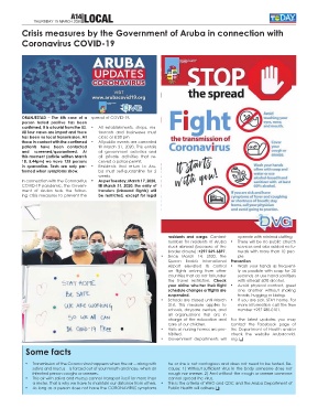 a meter. That is why we have to maintain our distance from others. • This is the criteria of WHO and CDC and the Aruba Department of