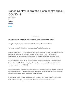 instancianan cu mester anuncia medidanan cu lo tuma, ta Banco Central di Aruba.