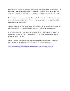 Tene bon na cuenta cu si bo ta un pashent cu ta Coronanavirus positivo of sospechoso,