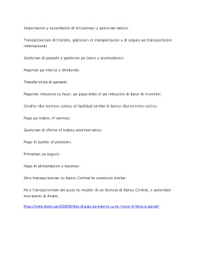 Pa e transaccionnan aki pues no mester di un licencia di Banco Central, e autoridad