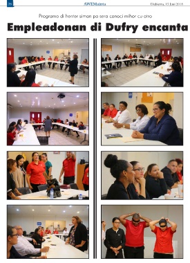 26 AWEMainta Diabierna, 15 Juni 2018 Programa di henter siman pa sera conoci mihor cu otro Empleadonan di Dufry encanta cu sesion di “Team Building”