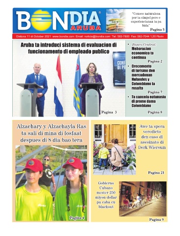 Dialuna 11 di October 2021 www.bondia.com Email: noticia@bondia.com Tel: 582-7800 Fax: 582-7044 1,50 Florin