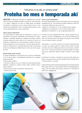 cu e slogan: “Influenza no ta djis un simple griep” recordando pa diabierna for di 1.30-4.00 pm pa medio di sistema di ‘WALK IN’