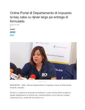 ORANJESTAD (AAN): Diamars Departamento di Impuesto a lanza su Online portal
