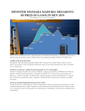 E prijs di benta di combustibel na Aruba ta depende di e desaroyo internacional di prijs di crudo