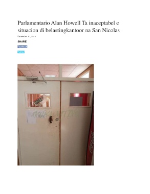Parlamentario Alan Howell Ta inaceptabel e situacion di belastingkantoor na San Nicolas December 10, 2019 SHARE Facebook Twitter
