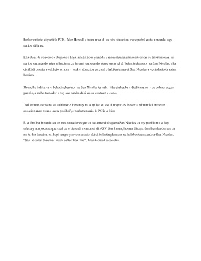 Parlamentario di partido POR, Alan Howell a tuma nota di un otro situacion inaceptabel cu ta tumando luga