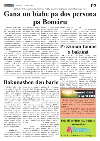 ism Corporation Bonaire lidat tambe. Pues adisho- Pa partisipashon den e dia 7 di mei 2021 riba e i reglanan di e Flamingo