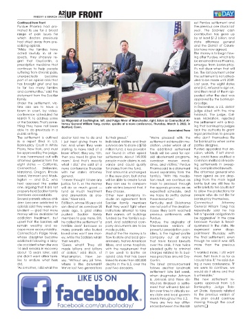 of the Sacklers. That's some- Liz Fitzgerald of Southington, left, and Paige Niver of Manchester, right, listen as Connecticut At- the settlement with a find-
